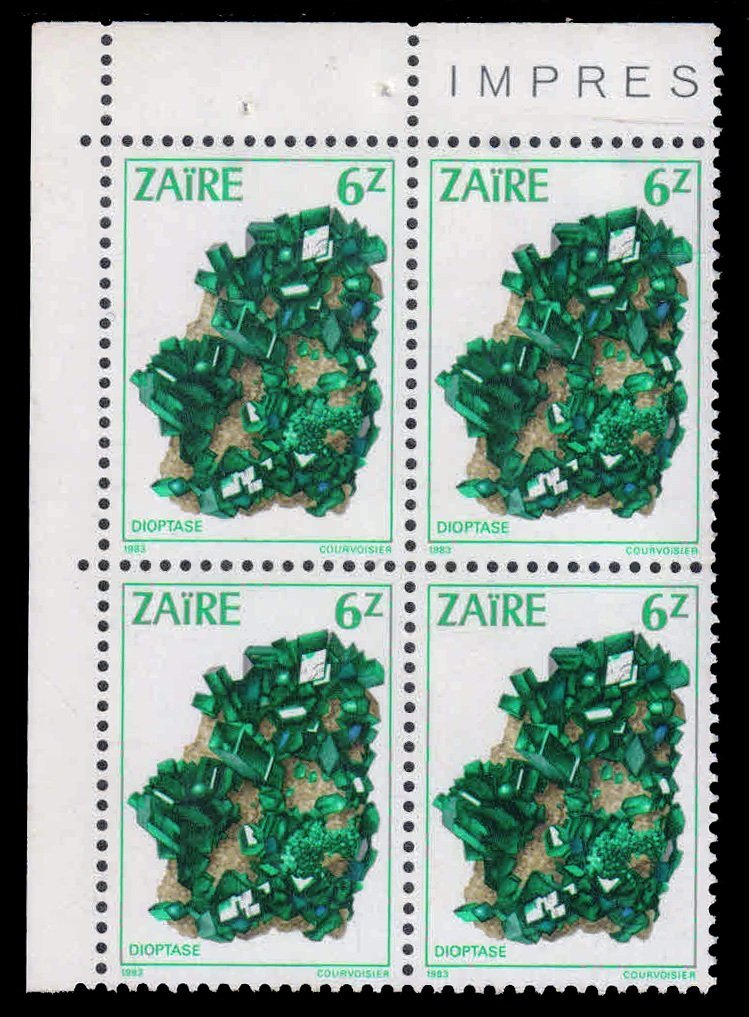 ZAIRE 1983 – Dioptase Minerals. Corner Block of 4, MNH. S.G. 1150. Cat ? 10