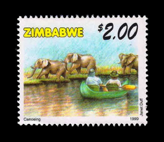 ZIMBABWE 1999 – Tourism, Canoe Safari, Elephant, 1 Value Stamp, MNH, S.G. 992